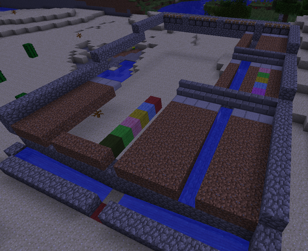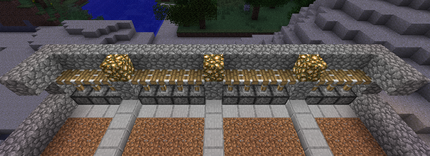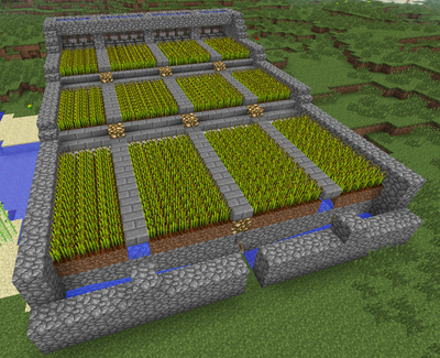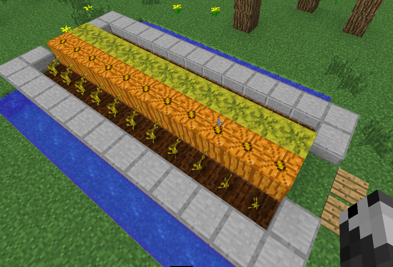 今まで見てきたマイクラサーバー見ても僕が使ってる収集機を見たことないのでここに紹介しようと思うます。「このURLでしったよ!」など僕のブログをいろんな人に言わないでください。作り方だけならいいですけど・・・。作り方を教える前にまず完成後の画像を見てみましょう。これです↓右下の真ん中にグロウストーンの下にレバーがあります。それを押すと奥にあるピストンが下がり押しとどめていた水が流れてきます。こんな感じです↓勝手に水で小麦が入口付近に小麦と種が溜まります。これが僕の使ってる小麦収集機です。これから作り方を紹介します----------作り方----------まず重要なことをいいます。1、水は8マス先まで流れる。2、同じ高さで水がある場所から4マス以上離れてると耕しても普通の土に戻る。3、小麦が生えてても水で真上から流れてると収穫できない。4、レッドストーンは15ブロックまでしか伝導できない。ではこの装置(?)をつくる材料と大まかな量を紹介します。(アップしてるもの)丸いし・・・・・・・・・・・取り敢えずいっぱい5スタックあればいいかも・・・?土・・・・・・・・・・・・・取り敢えずいっぱいレッドストーン・・・・・・・1スタック程(ピストン含む)石レンガハーフブロック・・・60個石ハーフブロック・・・・・・42個石レンガの階段・・・・・・・28個水・・・・・・・・・・・・・最低23個ピストン・・・・・・・・・・14個グロウストーン・・・・・・・10個石の階段・・・・・・・・・・8個看板・・・・・・・・・・・・2個レバー・・・・・・・・・・・1個ー立て方ーまず入口を含めず左右に8ブロックをこのようにおいてください。次はこのように見よう見まねで作ってください。ここら辺は注意するところはブロック数ぐらいだけです。一段目の土ブロックは縦7個、横3と4個です。二段目と3弾目の土ブロックは縦5個、横3と4個です。水源はその段で区切っていきます。もちろんハーフブロックのことも忘れないでください。それをしていくとこうなると思います。ここまできたらあと少しです。あと、真ん中のハーフブロックみたいに今出てるすべての水をハーフブロックで隠してください。次は回路を作ります。簡単で初心者でもできると思います(間違えずにやってたら)まずこのように入口のすぐ前にレバーを付けてください。つぎはレバーをつけたところの真後ろに回ってください。そしたらこのようにしてください。回路を大体12ブロック程先まで引っ張ってください。12ブロック後にこのようなものを作ってください。ここでは必ず丸いしにトーチを立ててください。間違えて下にある砂においたら正しく動きません。そして、また引っ張ってこのようにしてください。ここでは絶対に下にある丸いしにトーチをおいてください。その後このようにレッドストーンを引いて丸いしなどで引いてください。そしてブロックで隠します。このように半ブロックがある列の最後にはピストンを置かず代わりに違うブロックをおきましょう。もし、ピストンを置くとひどい場合回路が壊れます。あとはブロックで↓のようにブロックで囲って溝の部分に水を入れれば完成です!※この水は必ず無限水源にしてください。あとはすべての土ブロックを耕して小麦を埋めればいいです。※ただし、雪のバイヨームの場合水源の近くに松明などあかりをとおもしてください。水が凍って普通の土に戻ります。これでもわからない人は下に小麦収集機を作ったワールドデータをアップしてます。saves内に解凍したのをぶっ込めばいけます。https://box.yahoo.co.jp/guest/viewer?sid=box-l-j43twte4fmixaby7tw3eysgzaa-1001&uniqid=f41d3a0b-826a-4e75-8661-187f2b1cc501&viewtype=detail