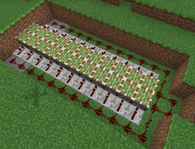 スイカが欲しくても一個一個やるのがめんどくさいって人におすすめです。いっぱいあればあるほど便利です。一個ならこんなふうにしないほうがいいです。ものすごく単純でそんなに苦戦するものではありません。完成がこれです↓----------作り方----------材料 粘着ピストン レッドストーン レッドストーンリピーター 半ブロック(僕の場合)やり方は簡単見よう見まねでこゆうふうに作れば(・∀・)オッケー!仕組みはピストンでおされたスイカやかぼちゃはブロックに戻ります。(スイカはバラバラにでる)それと、レッドストーンは15ブロックまでしかいかないので注意してください。ハーフブロックはピストンの上にスイカやかぼちゃを生やすためにおいています。耕した土を継続するには同じ高さで4ブロックまでしかできません。